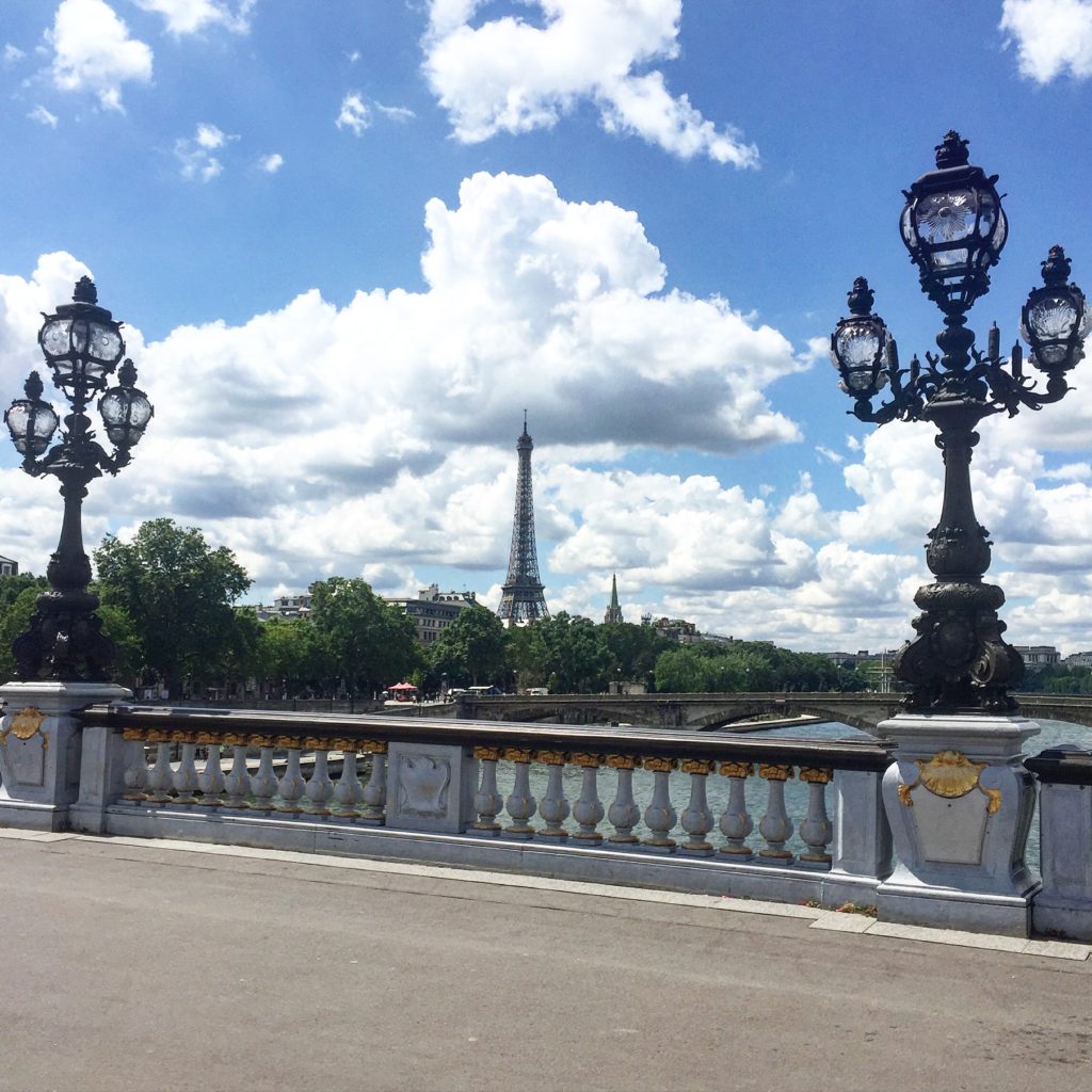 The glitzy glamour of this ebullient Belle Époque bridge provides another fabulous contrast to the coolness of the Eiffel Tower. Frilly feminine meets minimal masculine … it’s paradoxical Paris in a photo!