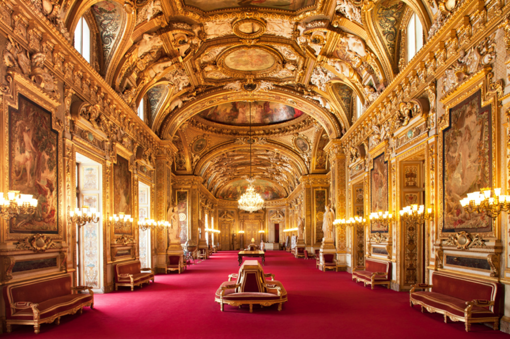Most of the former queen’s vision is long gone, but much of the interior, reworked in the first half of the nineteenth century, is stunning nevertheless — the glossy library that was painted by Delacroix, no less, and the Salle des Conférences (pictured), an extravaganza of red and gold that set the tone for the opulent Second Empire era.