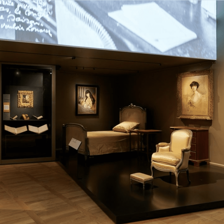 From 1911, suffering health problems, she wrote and entertained in her bedroom. Her later poems dwelt on the theme of mortality, but her early works were alive with sensuality, lyrical about love and nature, inspired by nineteenth-century Romantic poets. One of her most cherished lines is Il n’est rien de réel que le rêve et l’amour. (Nothing is real but dreams and love.)