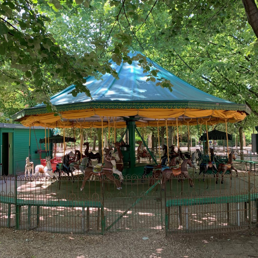 One of his most beloved poems from this period is Das Karussell, an ode to the ancient carrousel of the Jardin du Luxembourg. The merry-go-round, with its painted menagerie whirling beneath a shaded canopy, is the oldest in Paris, dating from 1879. But in a way it spins back further in time because it offers the game of jeu de bagues, where children on the outer circle of animals hold small wooden spears and attempt to catch rings with each turn — an echo of the tilting-at-the-ring knight game of the seventeenth century.