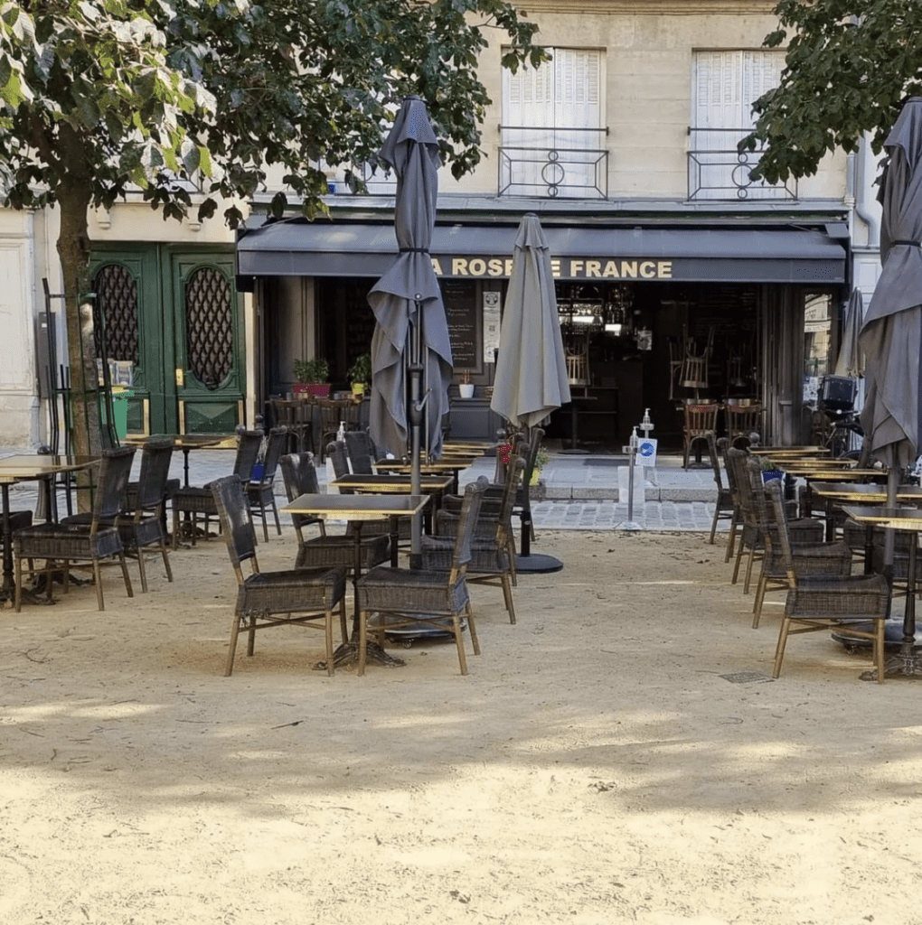 This triangular grove of pink-flowering chestnut trees comes alive from April. While numerous restaurants border the ‘square,’ so that you can watch on as locals play pétanque, some have just extended their terrace out to beneath the trees. La Rose de France is one such eatery; relax in for a long breezy lunch, ordering from a menu that caters to all, from meat-eaters to vegans alike.