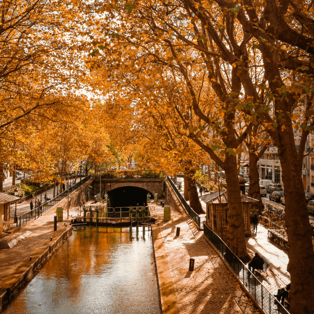 Find the Amélie section of the canal, in the tenth arrondissement. The old plane trees that line this stretch of water are beloved in warmer months for the shade they provide, but they’re just as gorgeous in autumn, when their leaves create shimmering reflections below, which you can admire from the series of arched iron pedestrian bridges.