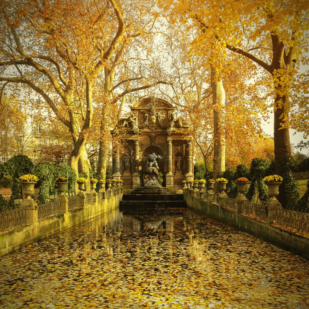 Or if you need shelter, you could claim a chair at the Medici fountain, under the canopy of tall plane trees, where the golden leaves are slowly drifting into the basin of water below.