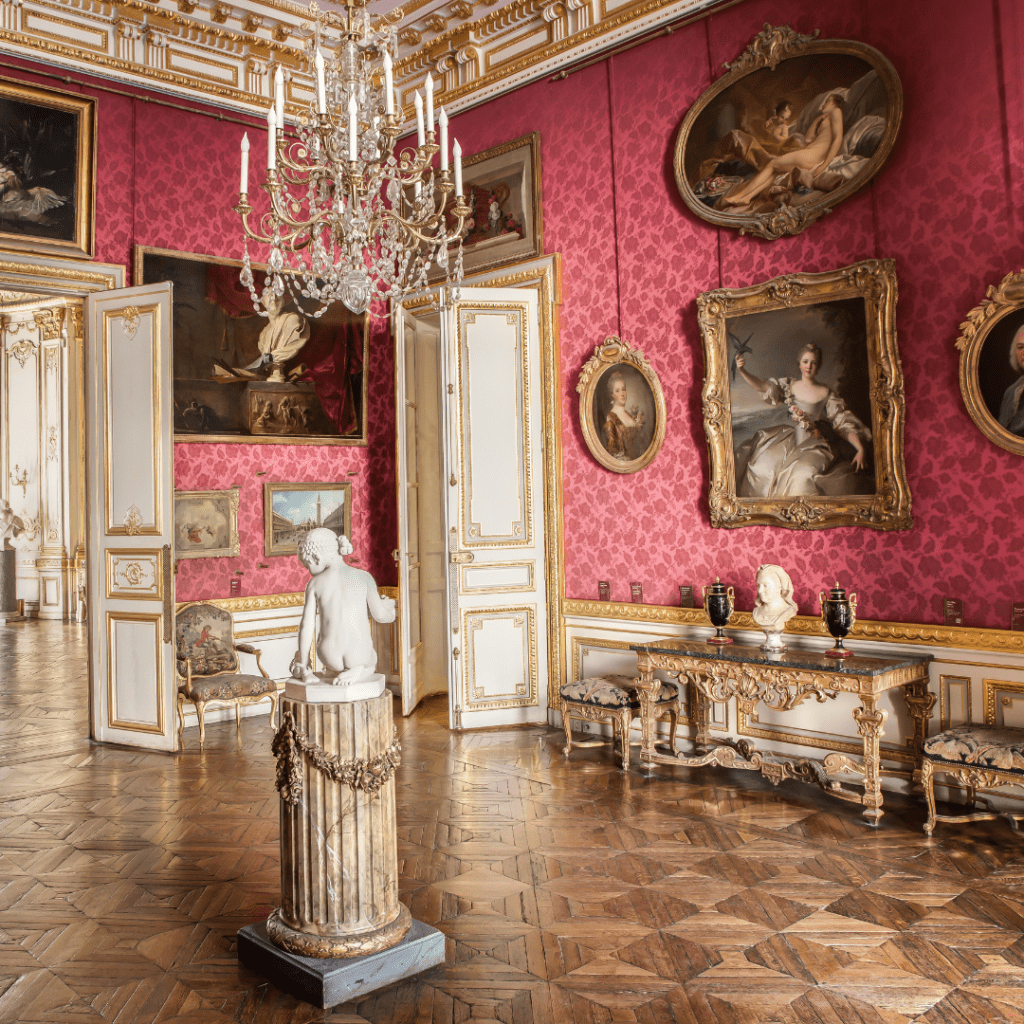 The State Apartments are the first rooms guests enter to this day, and the Grand Salon (above) and Salle de Musique (below), which is crowned with a gleaming musicians’ gallery, seem especially to resonate with the glamorous ghosts of parties past.