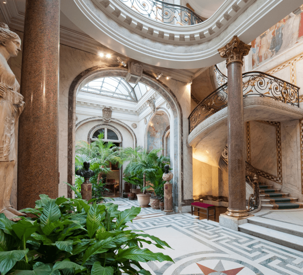 So much beauty abounds that it’s hard to know where to look: at the divinely frescoed ceilings, the gilded wood panelling, the lavish furniture …