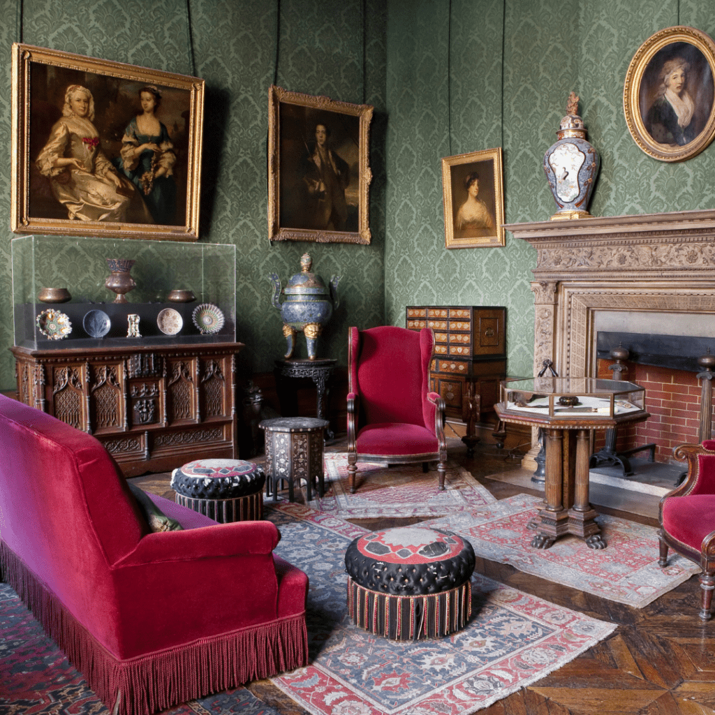 The smaller, cosier rooms might not have the wow factor of the entertaining spaces, but they’re no less special for that, having a soulful warmth to them that touches the heart. You can perfectly picture Nélie lovingly decorating every wall and corner of each room, with the art, furnishings, and decorative objects she collected during her travels to England, Persia, and the Indies. The Smoking Room (above) seems still infused with the brandy aroma and cigar smoke of the men who used to retire here after dinner parties.